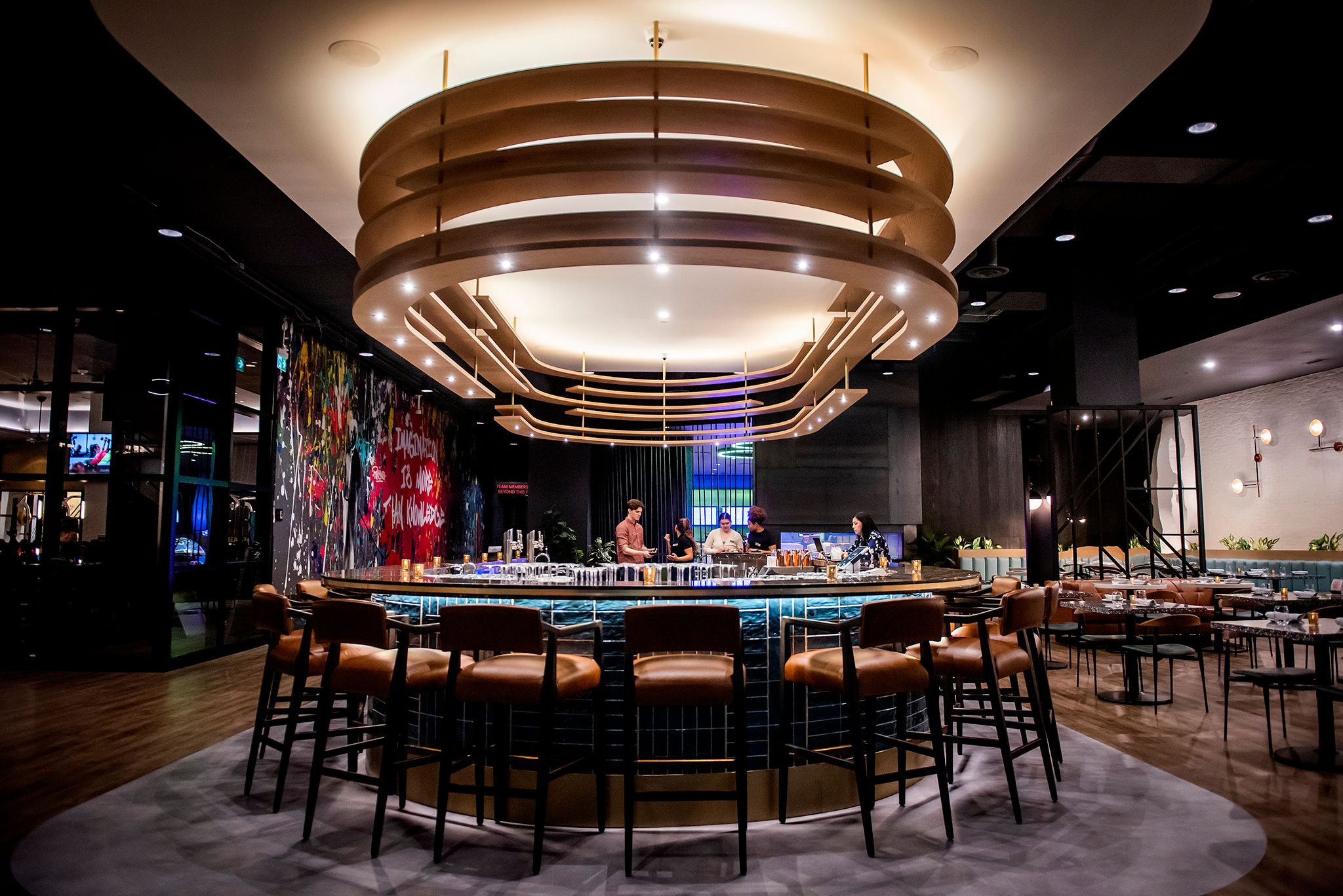 When you get bored of the billiards and arcade games, get to the Topgolf Swing Suites where you can play a round of golf on one of the top 85 courses in the world. Or, play another virtual sport like soccer, hockey, football, baseball and zombie dodgeball.